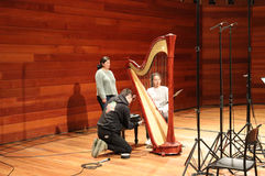 Dentro de la obra también llaman la atención un par de gestos momentáneos: la exigencia a la flautista de tocar (con su instrumento) y de entonar (con su voz) algunas notas al mismo tiempo, y la marcación del tempo con los pies y con golpes de mano en la caja de resonancia del arpa. Si cabe aún aludir a las “fusiones” o “hibridaciones”, este es un buen ejemplo de síntesis que anuda épocas, estilos y contextos divergentes.